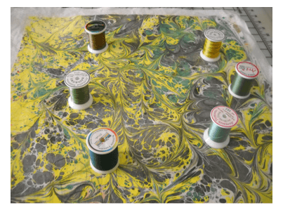 Keep in mind that this marbled quilting works best if you have some definite contrast with your color choices.